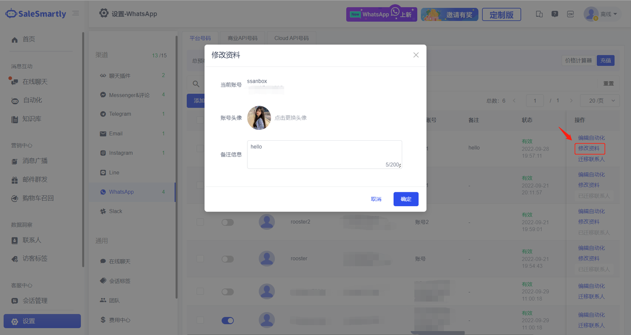 Kịch bản sử dụng: Với chức năng này, doanh nghiệp có thể sửa đổi hình ảnh hồ sơ của tài khoản WhatsApp, để khi gửi tin nhắn nhóm, tài khoản sẽ trông chuyên nghiệp và nhân văn hơn, từ đó tăng tỷ lệ mở tin nhắn quảng bá.