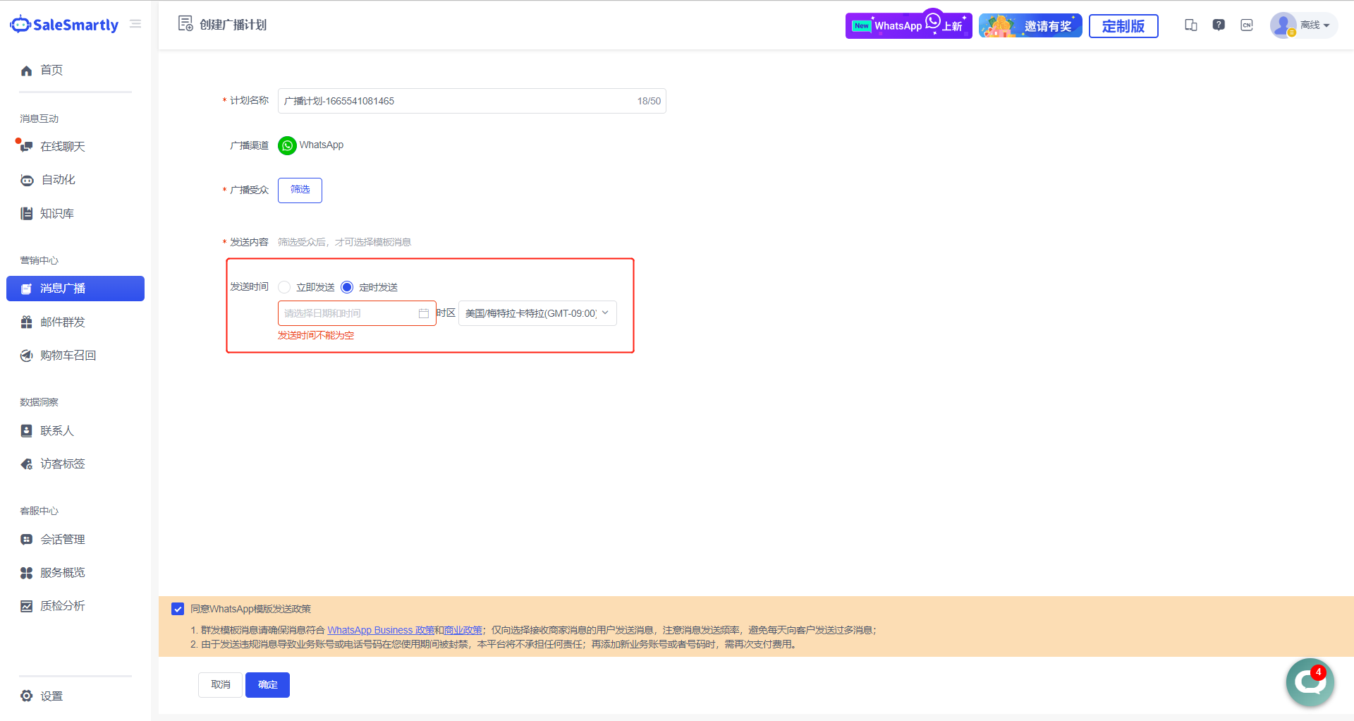Trong Tin nhắn quảng bá - Tạo kế hoạch quảng bá, một chức năng thời gian gửi mới đã được thêm vào, giờ đây hỗ trợ gửi theo lịch trình.