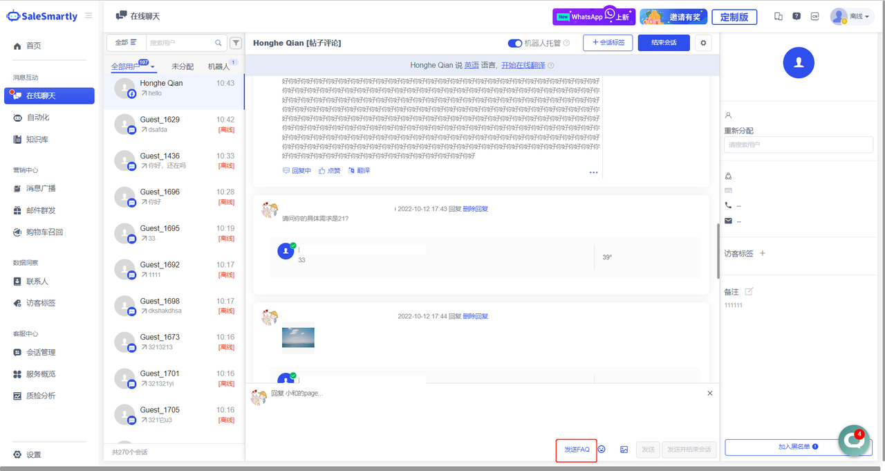 7. Hỗ trợ trả lời FAQ trên FB