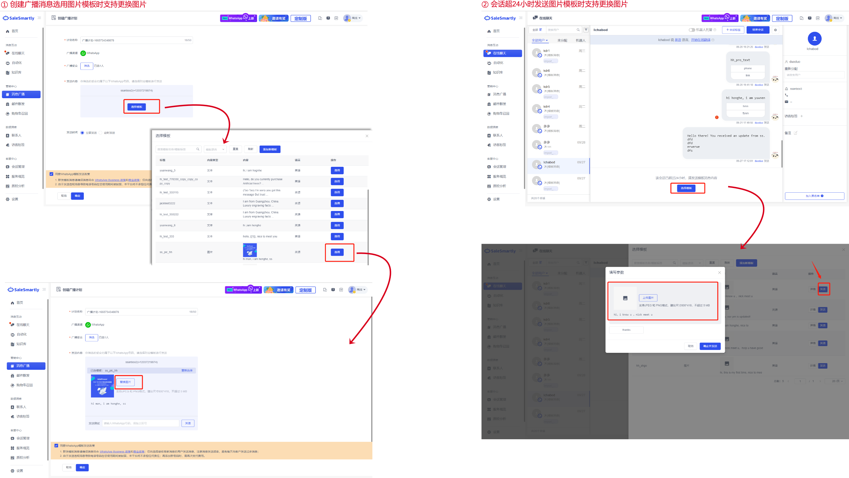 Kịch bản sử dụng: Với chức năng này, các thương nhân có thể thay đổi hình ảnh theo nhu cầu trong mẫu tin nhắn hình ảnh đã chọn. Không cần thao tác khác, họ có thể gửi một mẫu tin nhắn hình ảnh mới dựa trên mẫu trước đó, giúp cải thiện hiệu quả hoạt động.