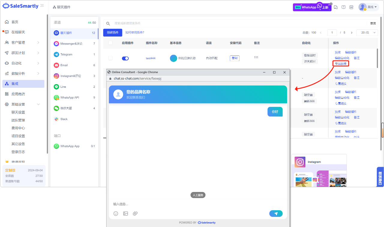Tình huống sử dụng: Bạn có thể nhúng liên kết này vào trang web hoặc APP, và khách truy cập có thể nhấp vào để mở trang tư vấn và trò chuyện với bạn. Đồng thời, bạn cũng có thể sử dụng liên kết này để quảng cáo và tiếp thị.