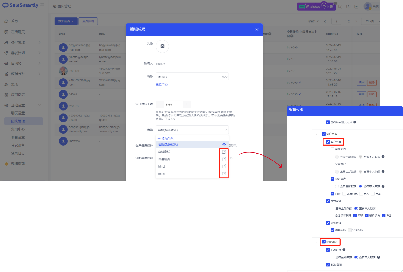 5. Hỗ trợ chỉnh sửa quyền dữ liệu cho danh sách khách hàng và kế hoạch nhắn tin hàng loạt