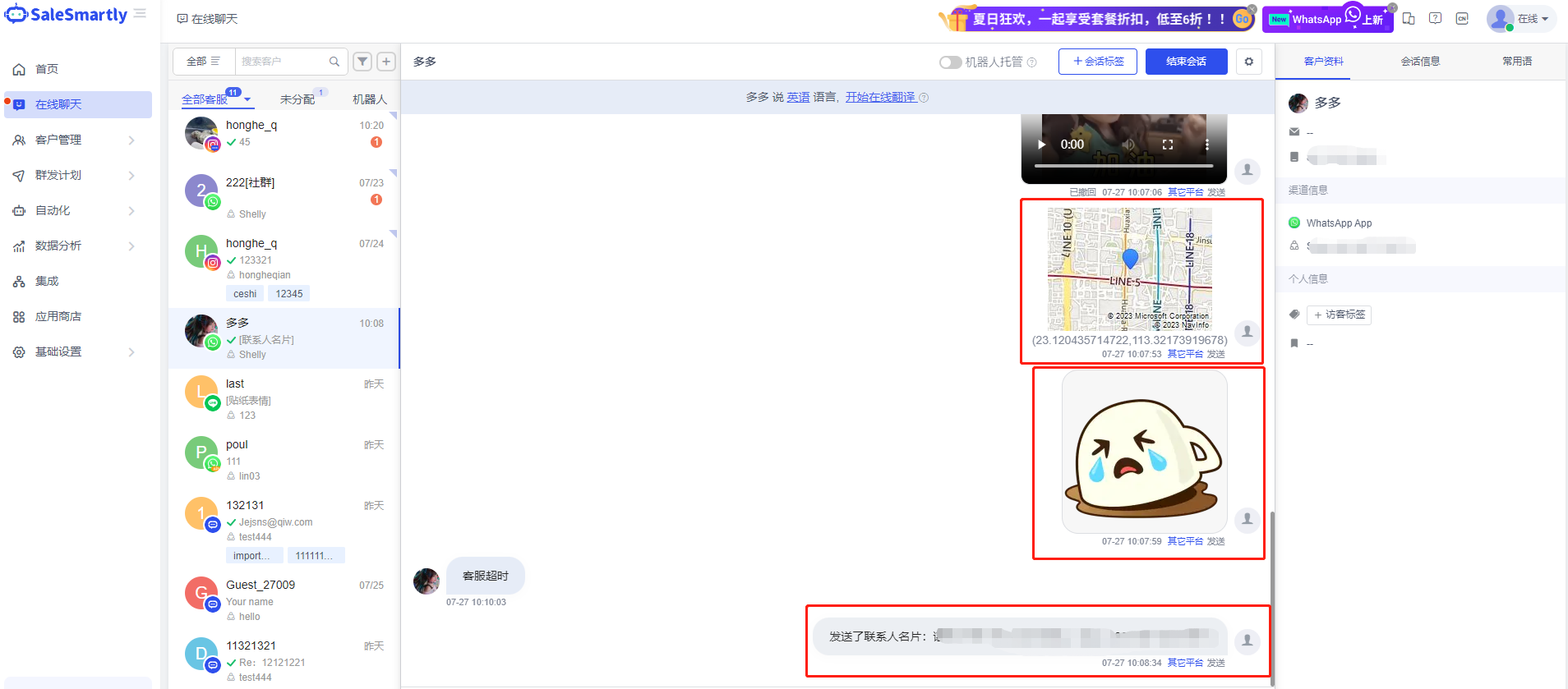 Tình huống sử dụng: Bằng cách tương thích với nhiều loại tin nhắn hơn và hiển thị thông tin trò chuyện đầy đủ hơn, có thể giúp bạn nhanh chóng hiểu nhu cầu của khách hàng và thúc đẩy bán hàng, đồng thời cải thiện trải nghiệm trò chuyện và tương tác với khách hàng trên nền tảng SaleSmartly.