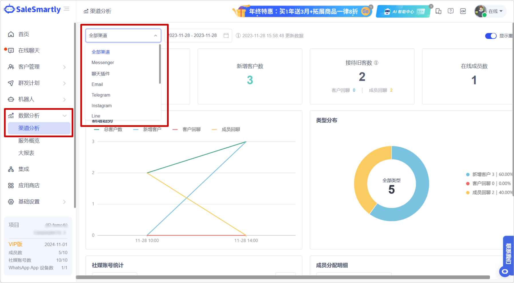 Trong Phân tích Dữ liệu - Phân tích Kênh, hiện hỗ trợ phân tích tất cả các kênh.