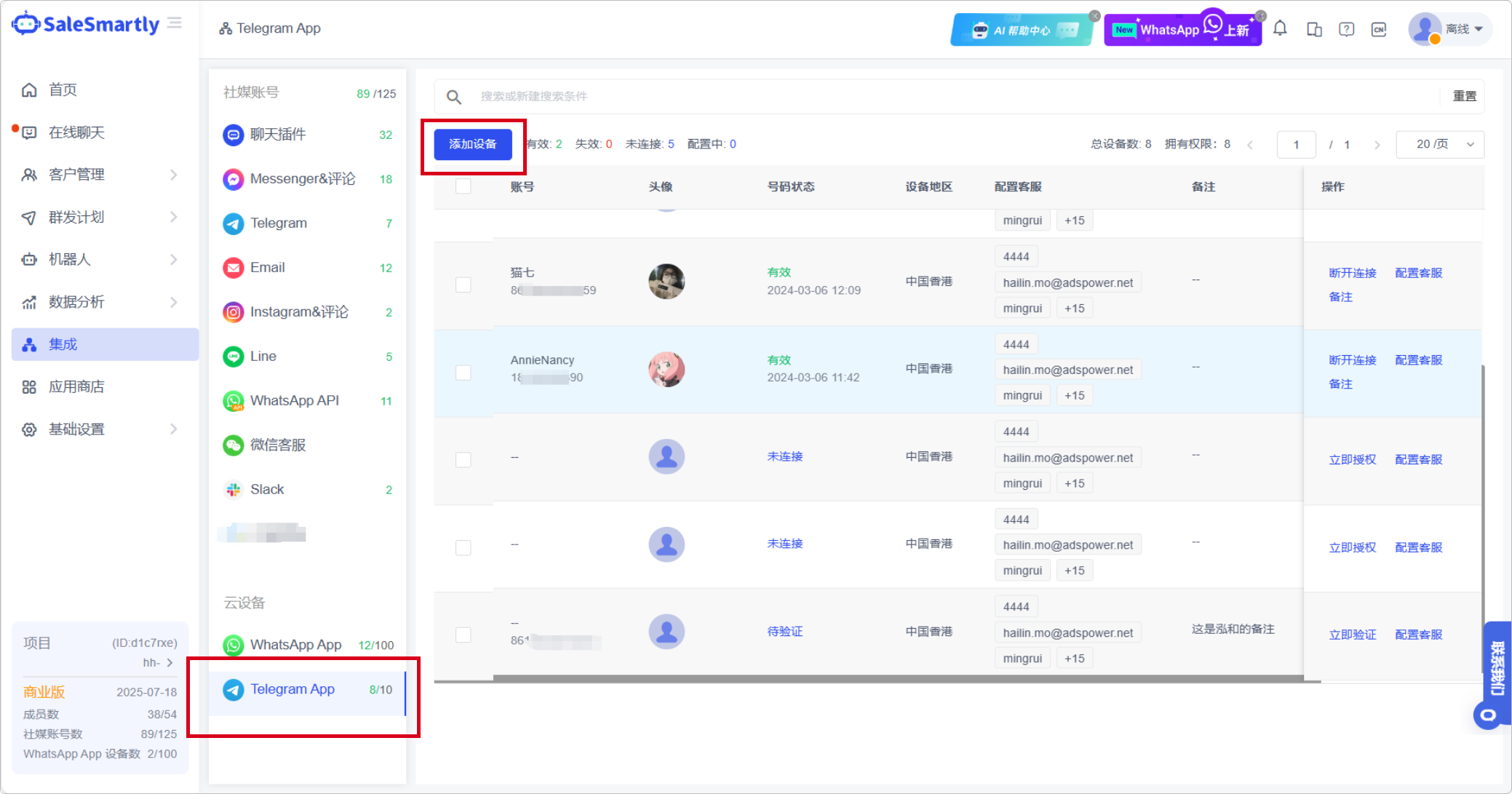 Trong mục Tích hợp, chúng tôi đã bổ sung tính năng kết nối với tài khoản cá nhân Telegram. Giờ đây bạn có thể trò chuyện thuận tiện với các liên hệ trong tài khoản cá nhân thông qua SaleSmartly.
