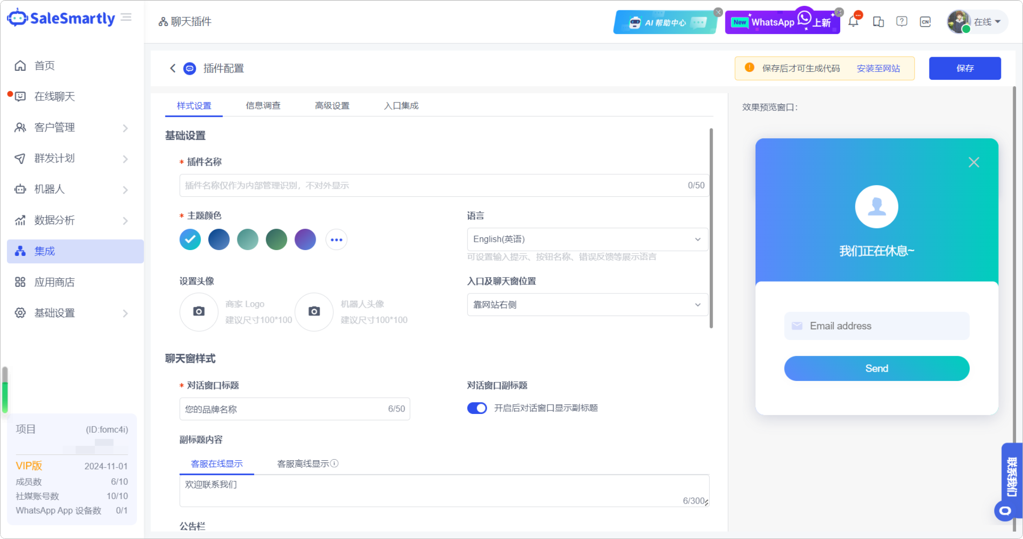 Tại mục Tích hợp - Plugin chat, chúng tôi đã nâng cấp toàn diện giao diện cấu hình: