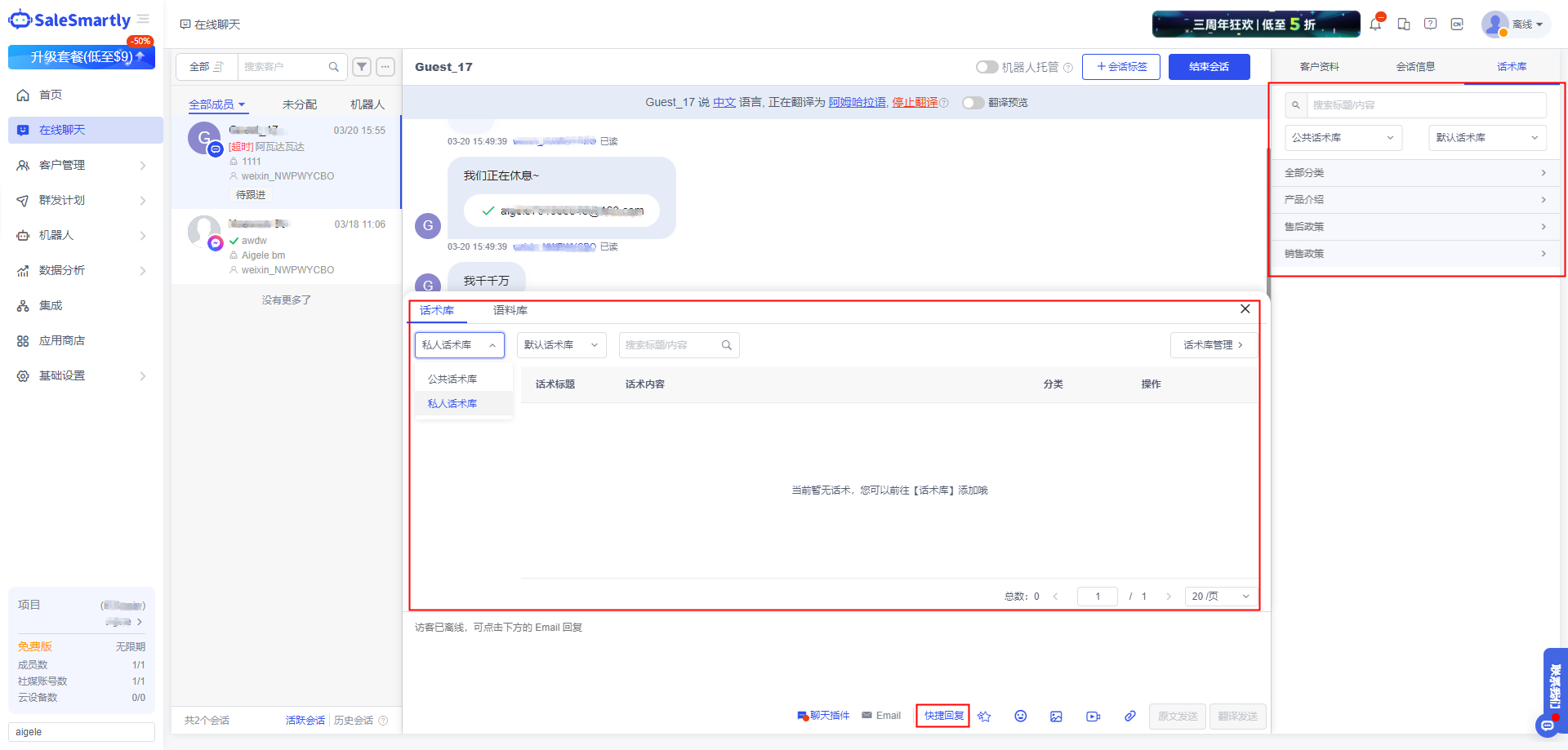 - Kết hợp các công cụ của SaleSmartly như gửi tin nhắn nhóm, dịch thuật, gắn nhãn để thực hiện marketing chính xác