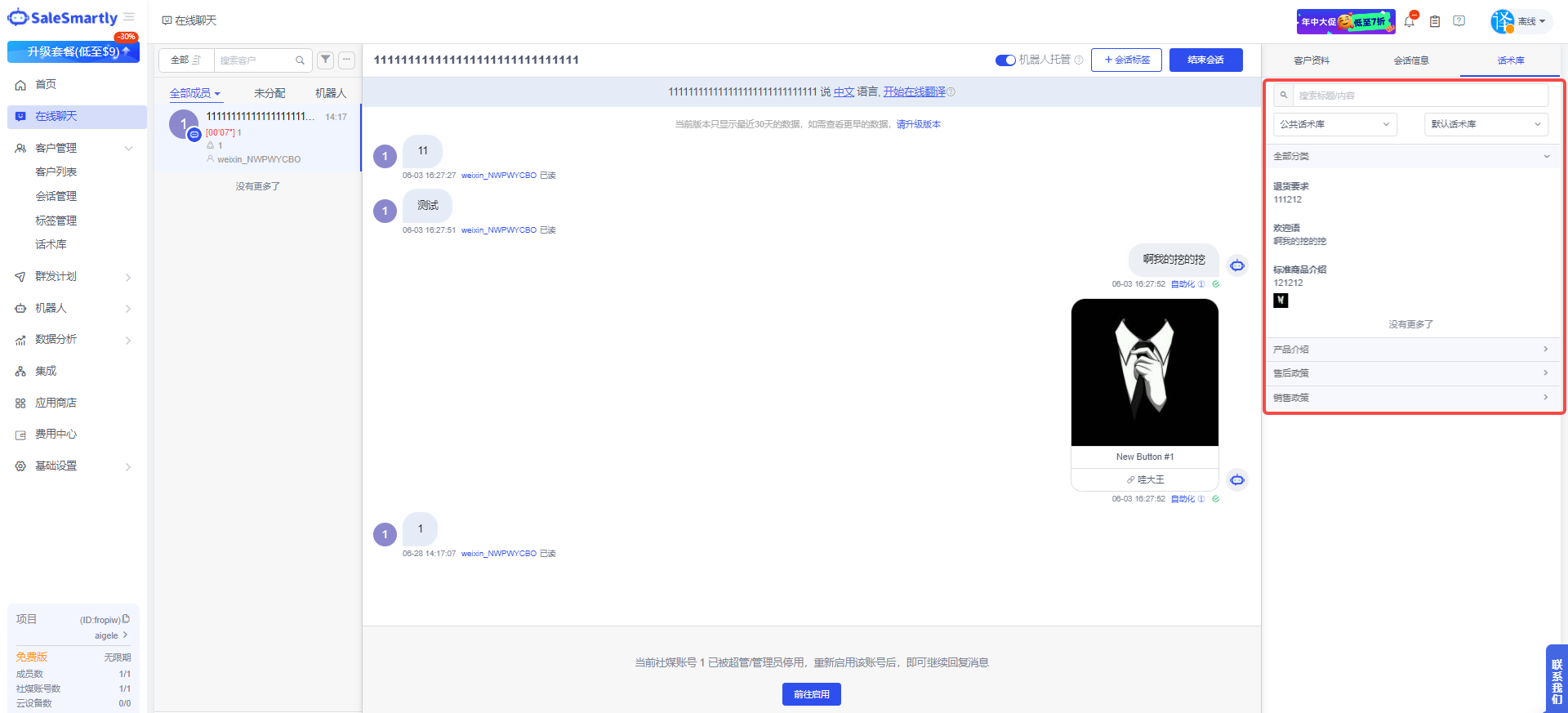 Trong Robot - Robot AI, bạn có thể chỉ định kho ngữ liệu cho phản hồi tự động AI của nền tảng salesmartly để hiện thực hóa nội dung kho ngữ liệu cá nhân hóa cho các kênh khác nhau.