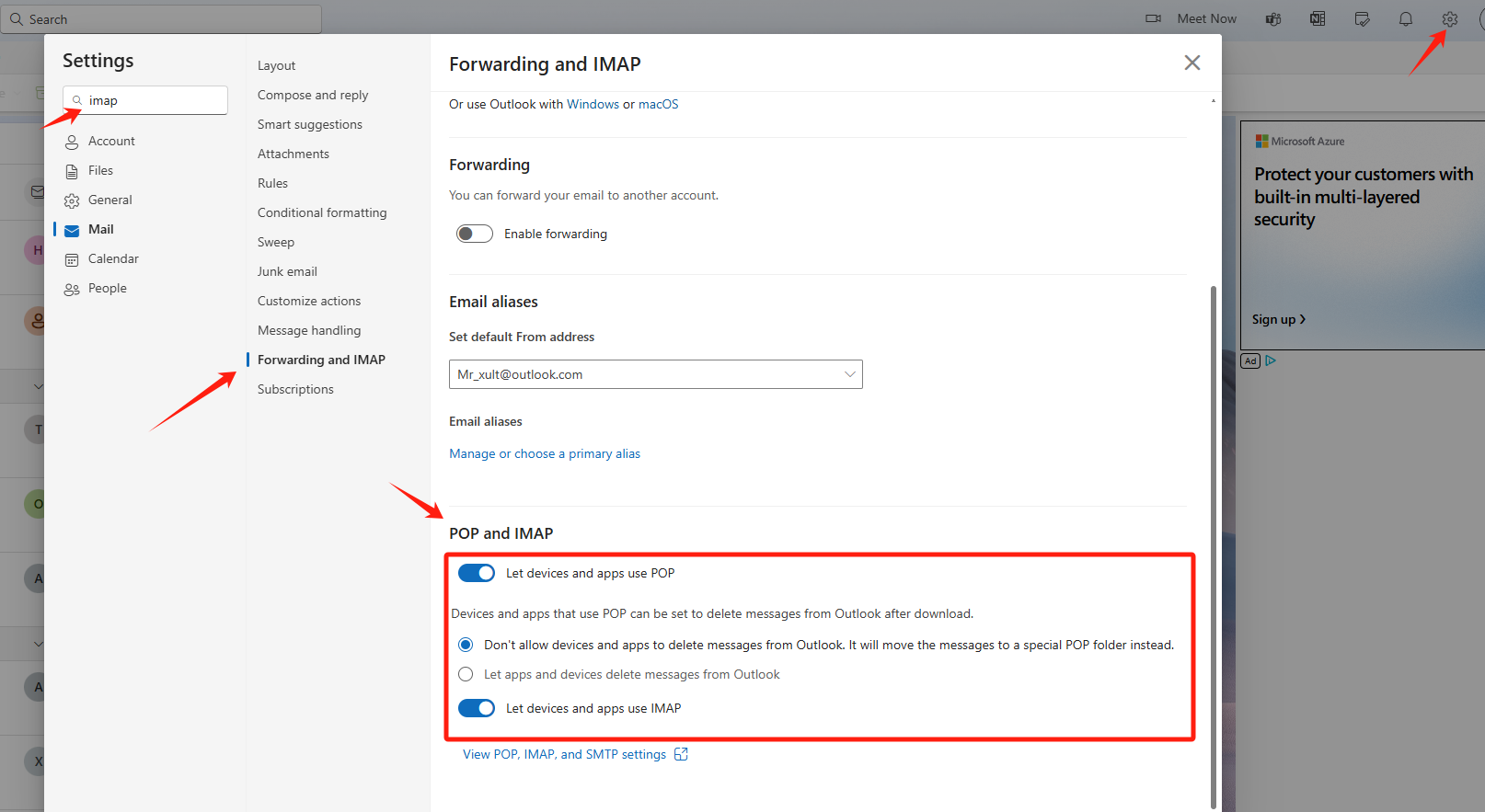 - Kiểm tra cài đặt Cho phép thiết bị và ứng dụng sử dụng POP và Cho phép thiết bị và ứng dụng sử dụng IMAP đã bật chưa. Hai tùy chọn này cần bật trước khi tích hợp.
