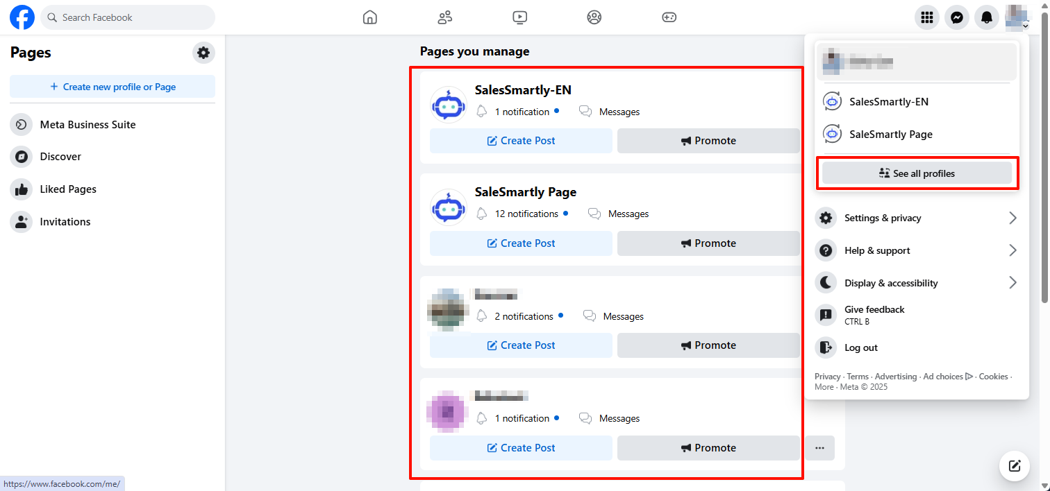 - Nhấp vào Xem tất cả trang cá nhân, sau đó chọn trang công khai bạn muốn chuyển đến.