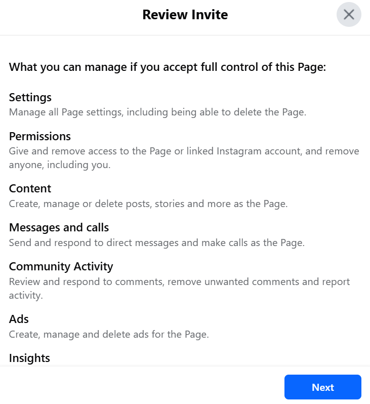 Bạn đã chấp nhận thành công lời mời quản trị viên Trang Facebook.
