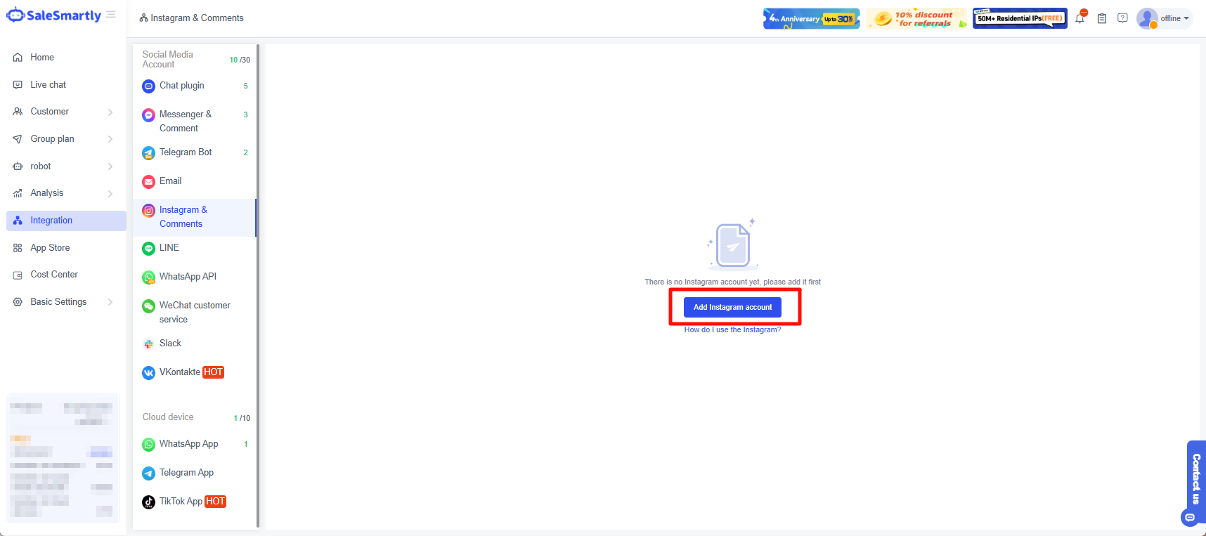 Hướng dẫn tích hợp Instagram với SaleSmartly để chăm sóc khách hàng đa kênh