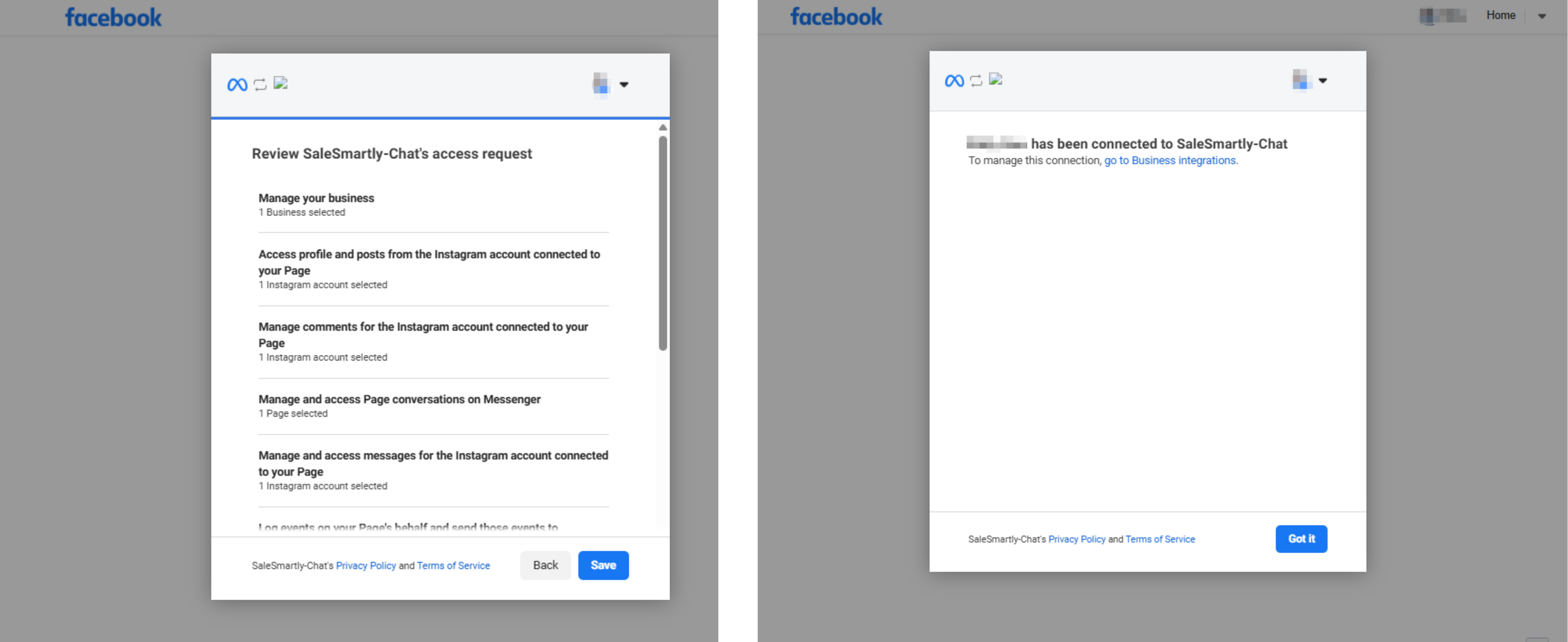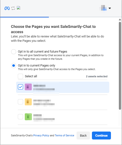 Chọn quyền truy cập cho SaleSmartly (khuyến nghị: chọn tất cả). Nhấn Lưu > Tiếp tục > Đã hiểu để hoàn tất.
