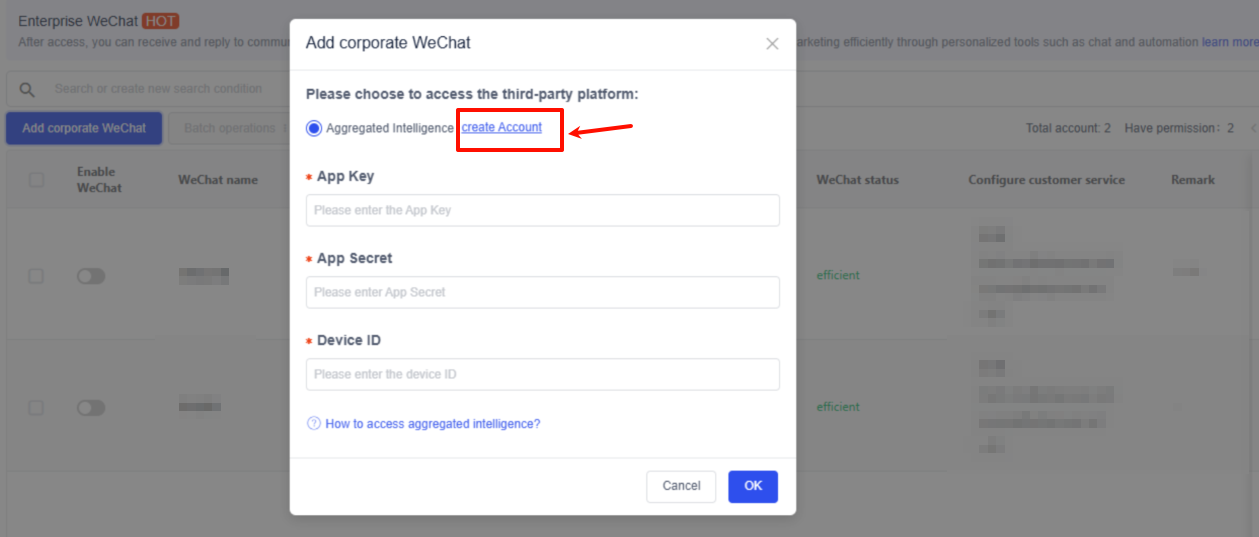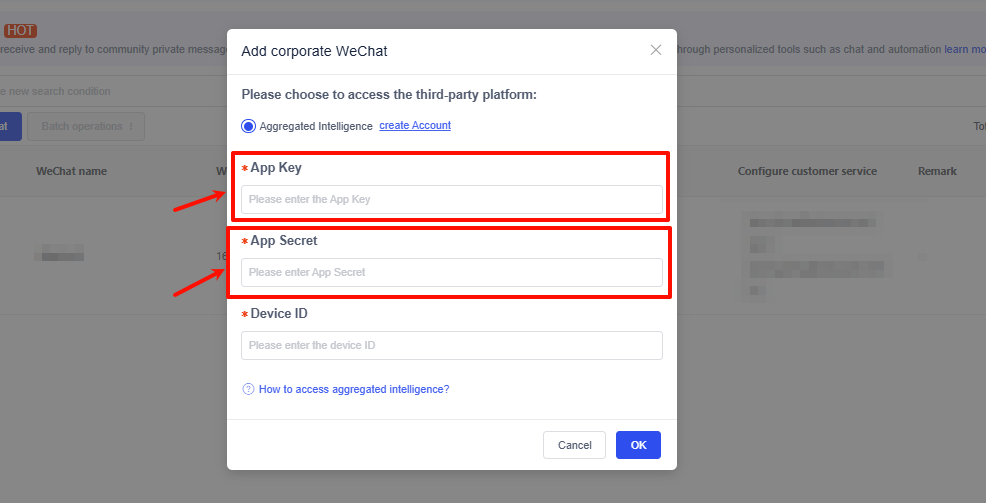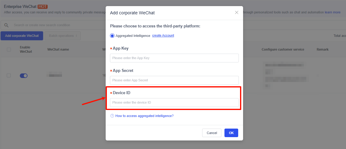 Kiểm tra lại xem Device ID, App Key, và App Secret bạn đã nhập vào SaleSmartly có chính xác không. Sau khi xác nhận, nhấp vào OK để hoàn tất tích hợp. Tài khoản WeCom của bạn đã được kết nối thành công với SaleSmartly.