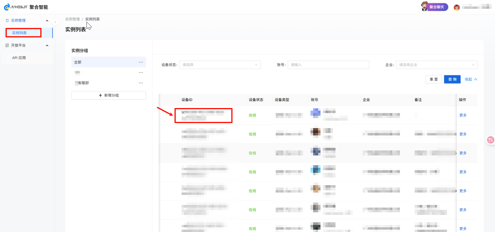 Trong bảng điều khiển JUHEBOT, tìm tài khoản WeCom bạn vừa kết nối. Sao chép Device ID tương ứng.
