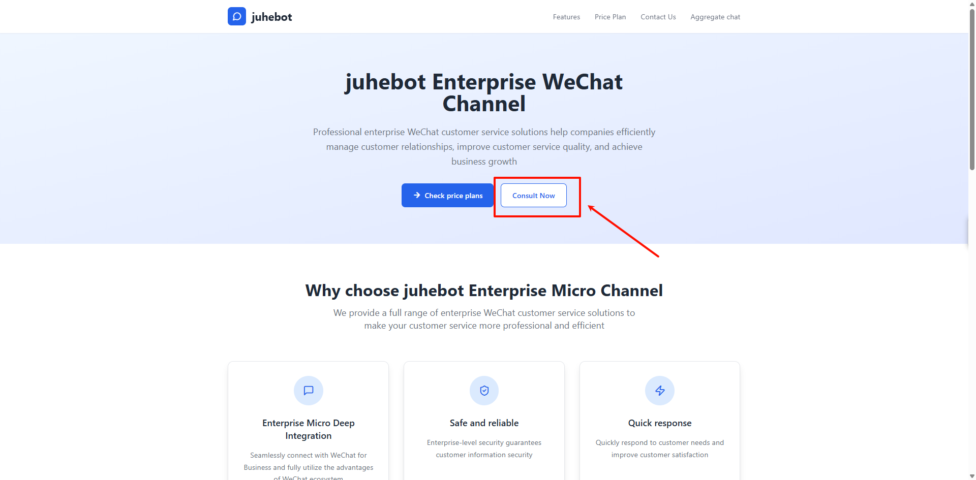Bạn sẽ được chuyển hướng đến nền tảng bên thứ ba JUHEBOT (https://juhebot.com/salesmartly/), nơi bạn sẽ kết nối tài khoản WeCom của mình với hệ thống SaleSmartly để quản lý và gửi tin nhắn tập trung.
