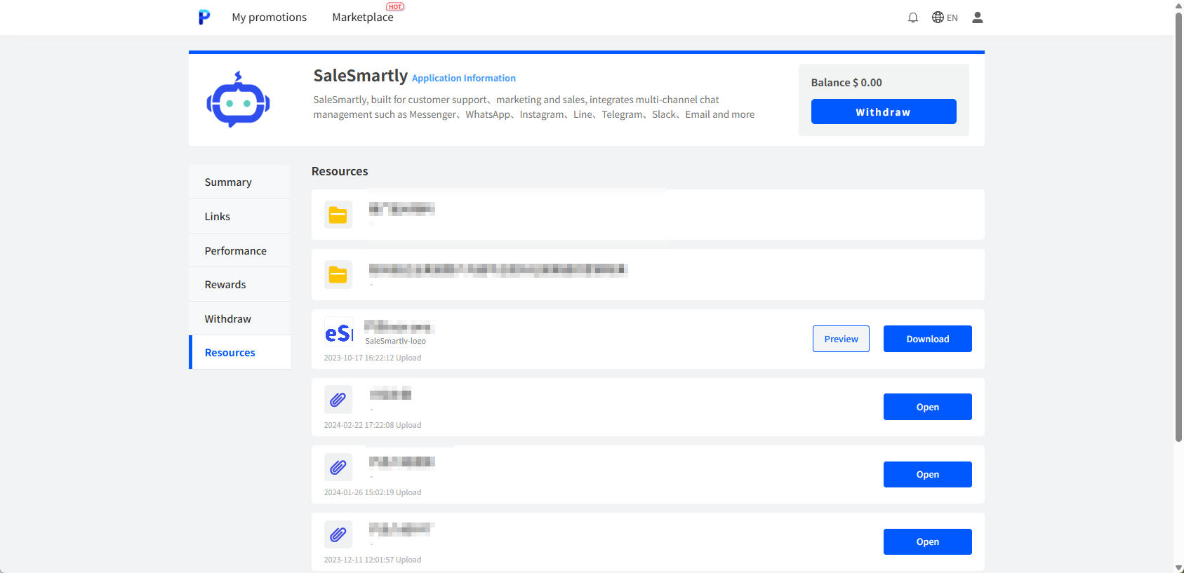 2.4. Lấy tài liệu khuyến mãi cần thiết trong thanh menu Resources
