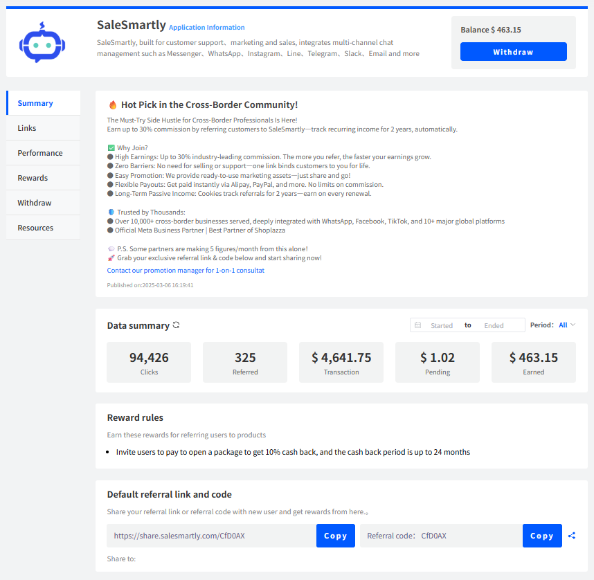 Hướng dẫn tham gia chương trình Affiliate SaleSmartly - Kiếm tiền từ giới thiệu