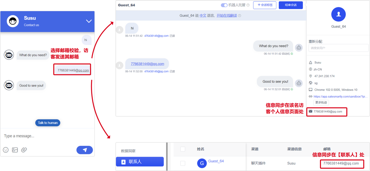 Usage scenario: When a customer leaves your website, you can use your own email address to send an email to reach the customer again, which is more user-friendly.