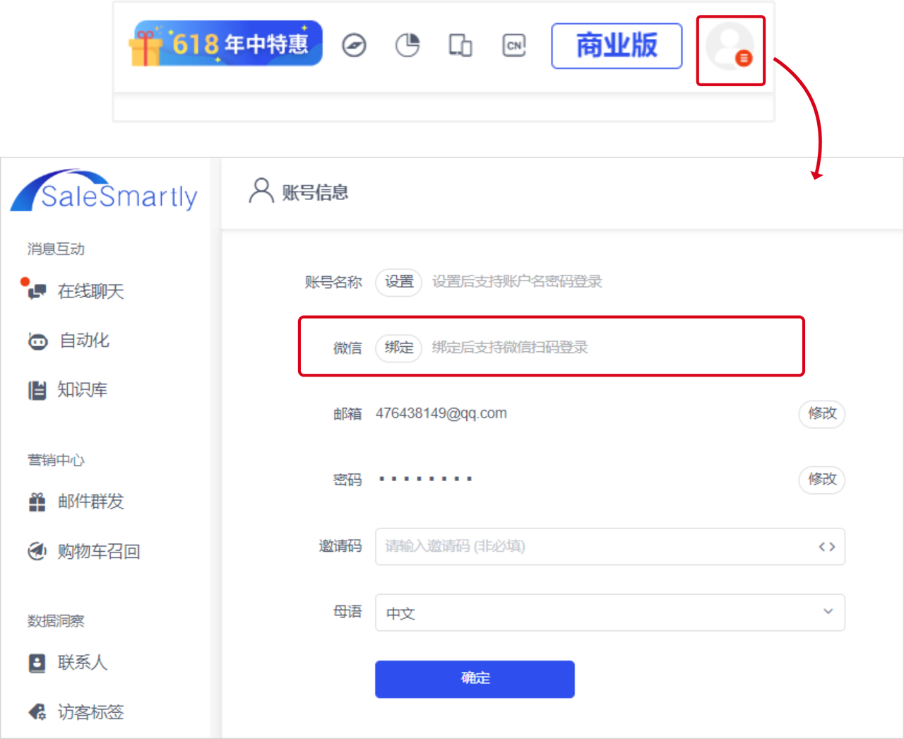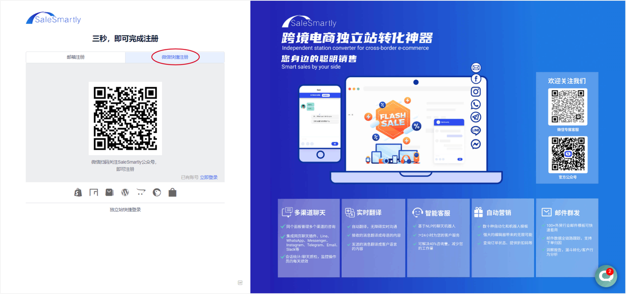 We now support registering a SaleSmartly account and logging into the platform by scanning the WeChat QR code, making it more convenient for you to register and log in to our platform.
