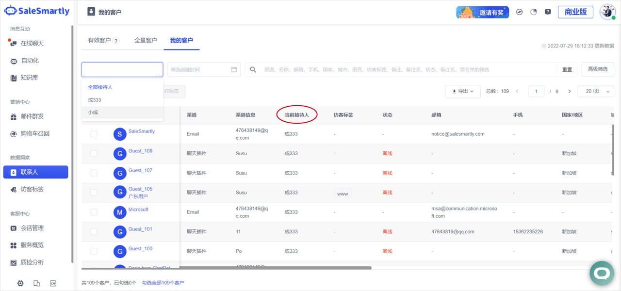 Usage scenario: Customer service staff can view the list of customers they have received, maintain customer information and follow up with customers on a regular basis. At the same time, it solves the customer protection issue that the company is concerned about and prevents different customer service staff from snatching orders or flying orders.