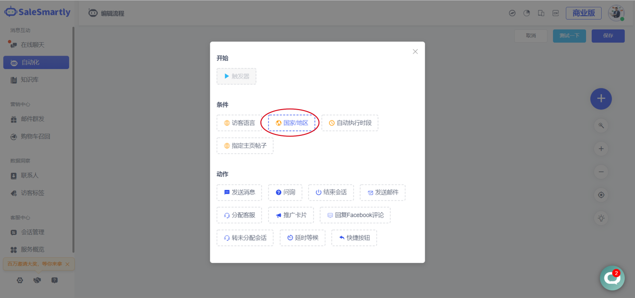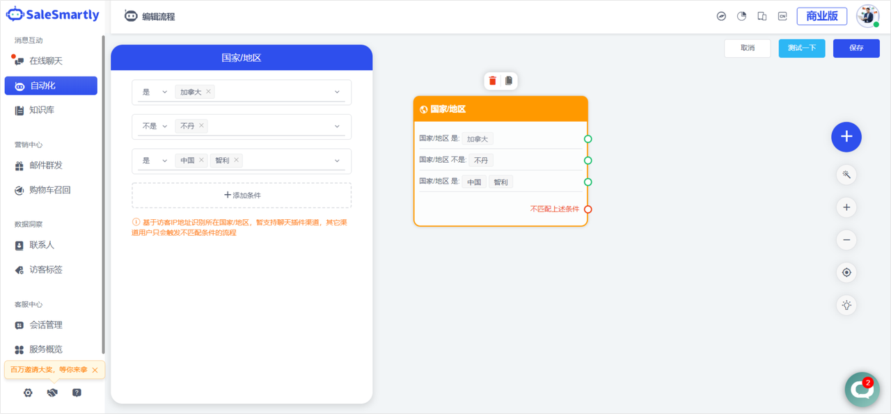 Usage scenarios: You can trigger different processes for visitors from specific countries/regions to better suit your different business scenarios.