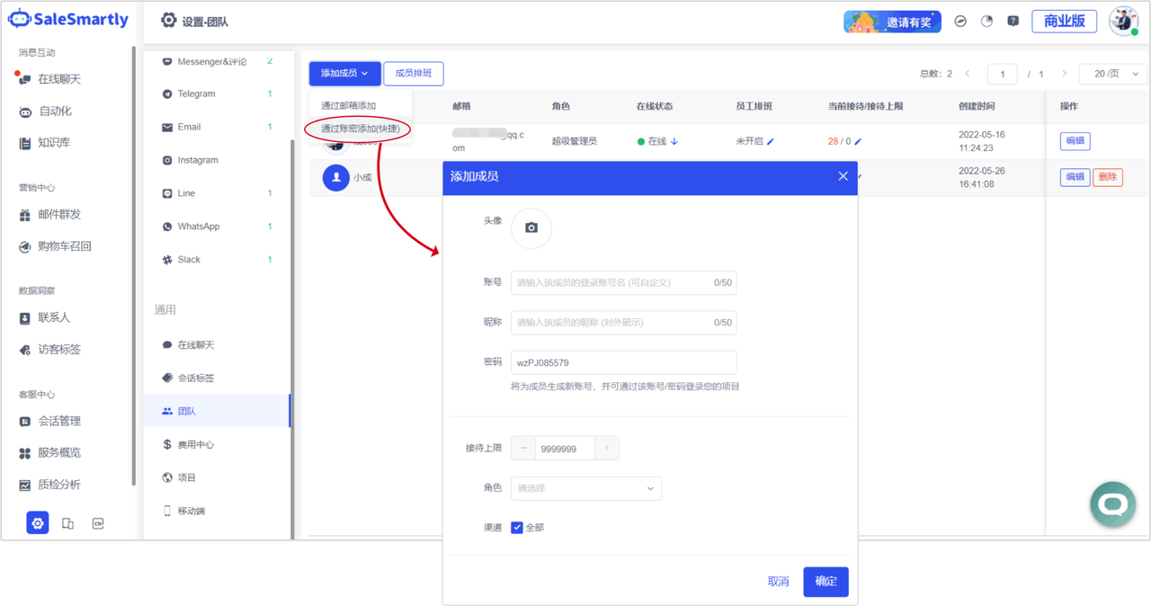 Usage scenario: If your members do not have email addresses and it is inconvenient to add members using the "via email" method, you can use the account and password method to conveniently add members. You do not need the other party's email address, you only need to customize the account name & password to add members.