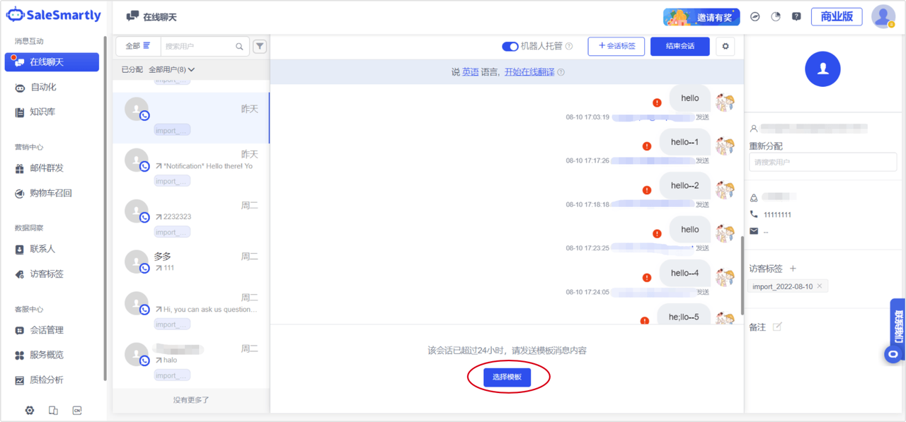 In Online Chat, for WhatApp channel conversations, if the conversation time exceeds 24 hours, you can now use templates to send messages. Templates need to be applied for from the Twilio backend, the process is simple, and approval is generally completed within 24 hours.