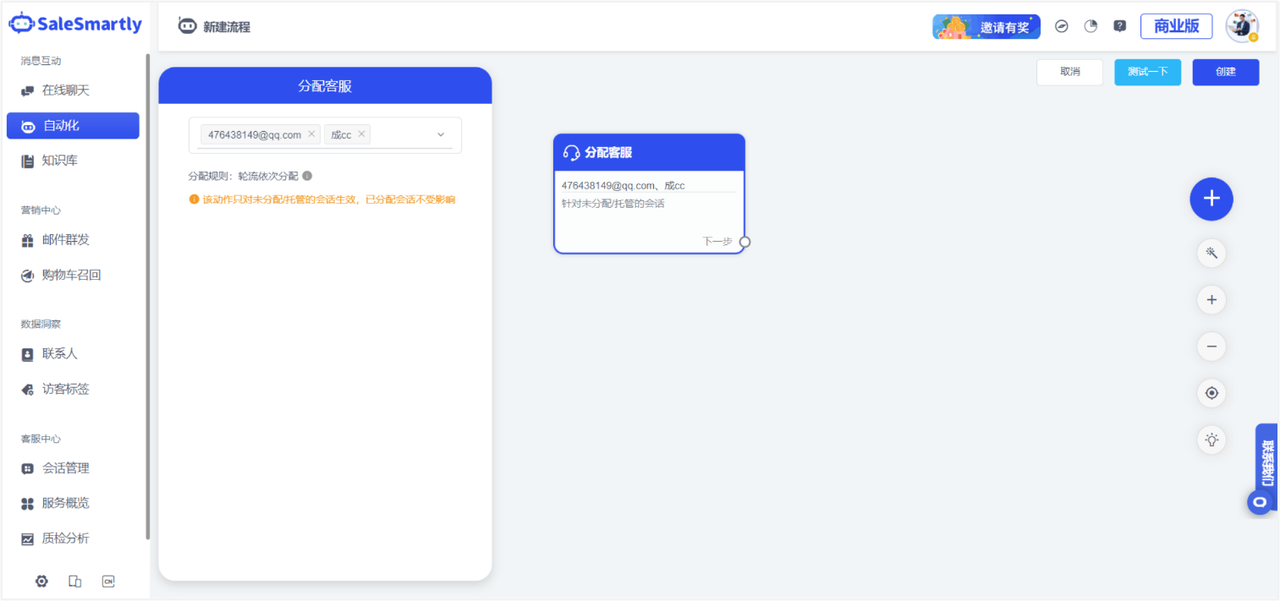 In Automation, when you select Action, after selecting the Assign Customer Service action, you can now assign customers to selected customers from top to bottom. If a customer service representative is offline or exceeds the reception quota, the customer service representative will still be assigned to the corresponding customer service representative.