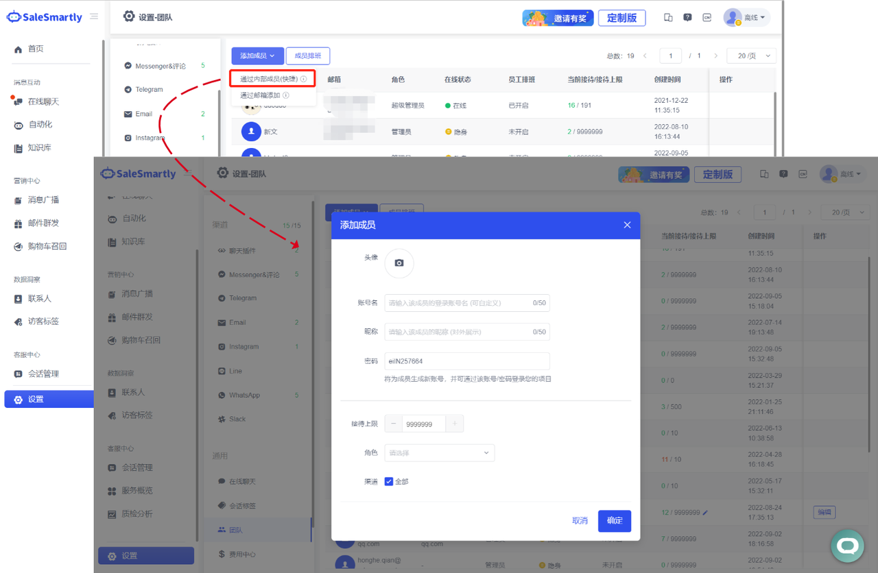 In Online Chat, the number of conversations corresponding to the channel and account can be displayed, and account dimension search is also supported.