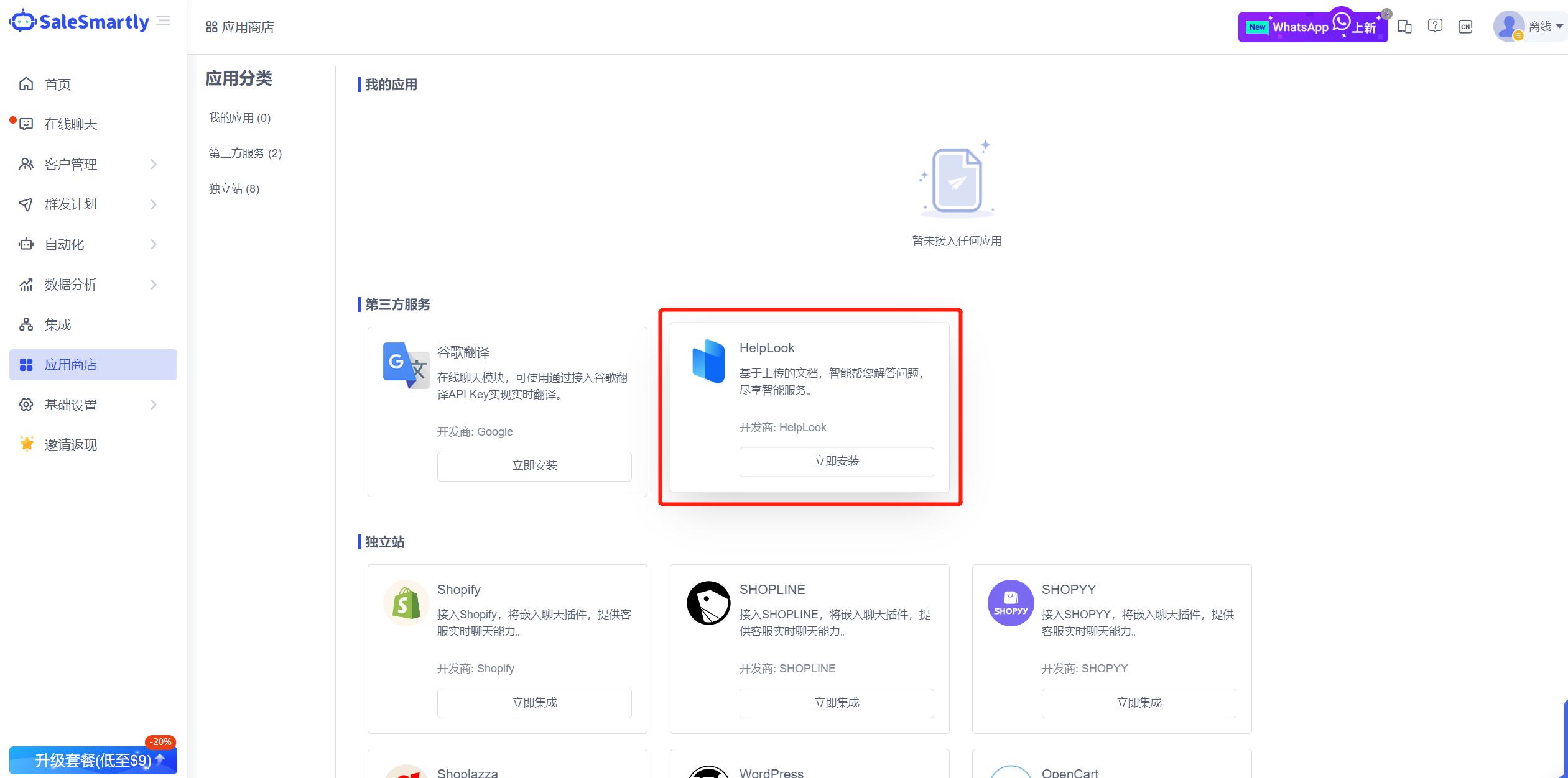 In Integration - WhatsApp App, as long as you upgrade to the premium package, you will be given a WhatsApp device by default. As shown in the figure below, click Activate Now to directly obtain the WhatsApp device and scan the code to connect.