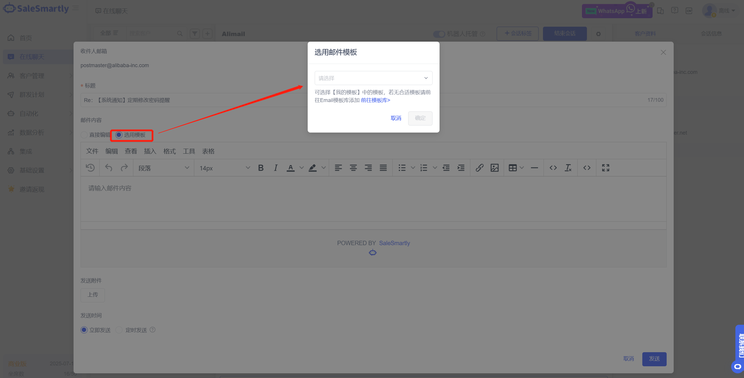 8. Email Channel Supports Template Selection