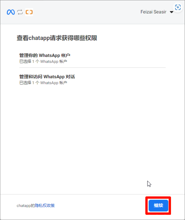 2.5. Select your Meta business account and continue