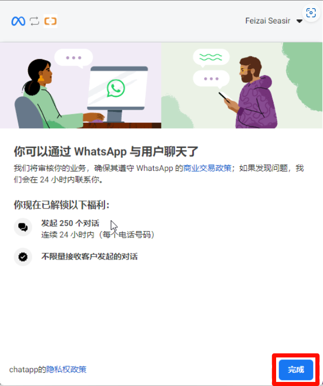 When you see the screenshots above, you have completed the self-service registration process for the WhatsApp API number.