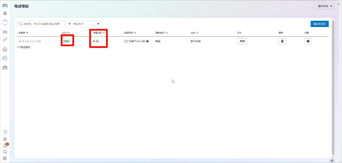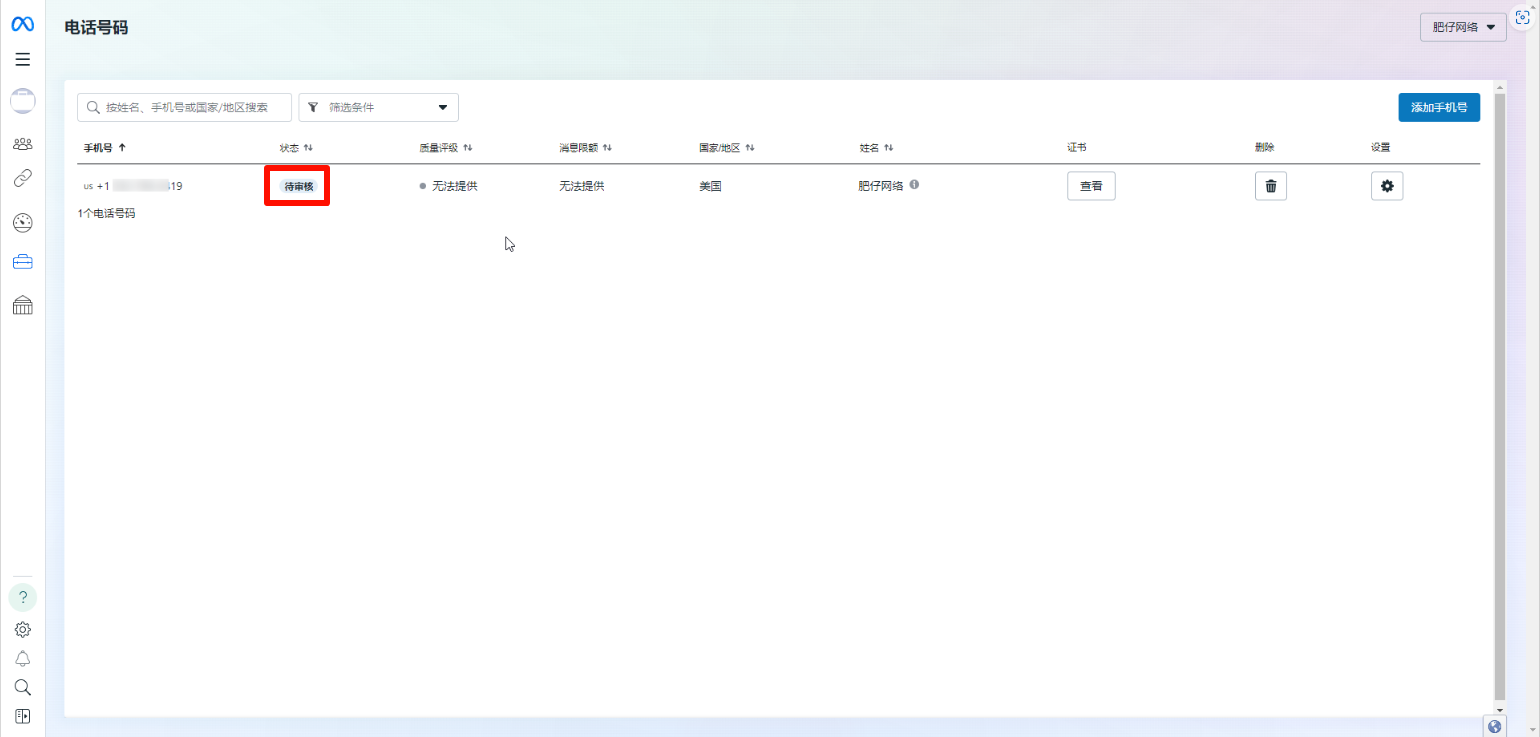 - After Facebook's official review is passed, it will be automatically synchronized in the SaleSmartly system. If it is not synchronized in the SaleSmartly system, please repeat the above steps to register the WhatsApp API number to synchronize it to the SaleSmartly system. For details, see: Self-service registration of WhatsApp API number tutorial