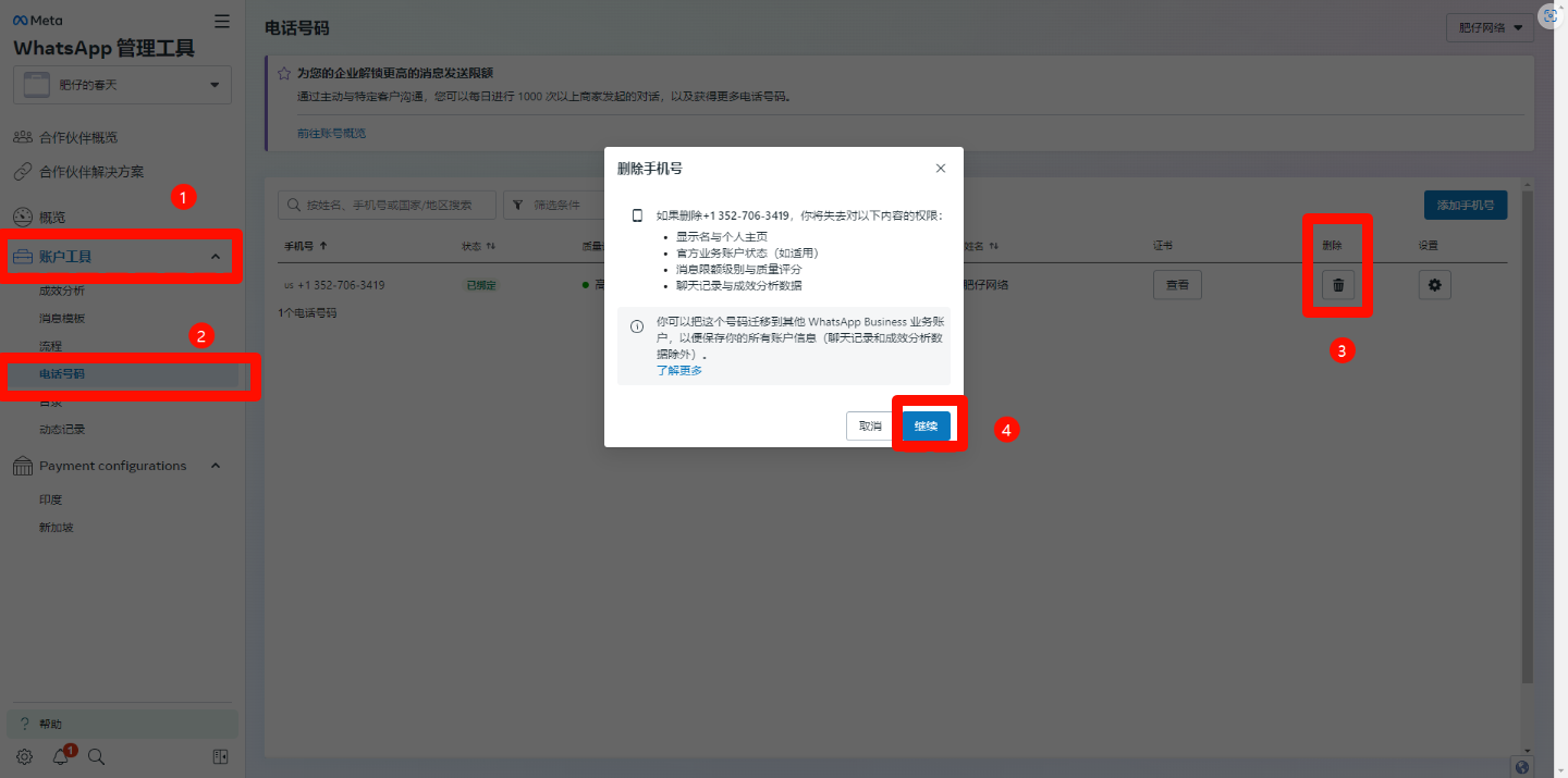 3.3. The number of phone numbers bound to this business account has reached the upper limit