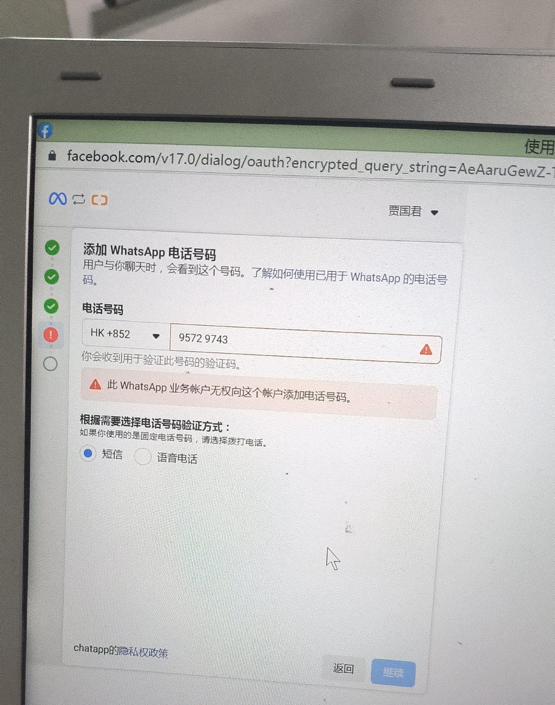 3.5. This WhatsApp Business account does not have permission to add phone numbers