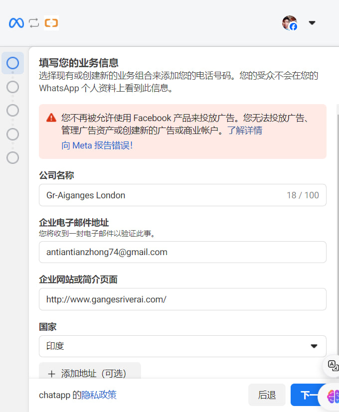 - Please try the self-service registration process again. Please refer to the tutorial on self-service registration of WhatsApp API number: Click to jump