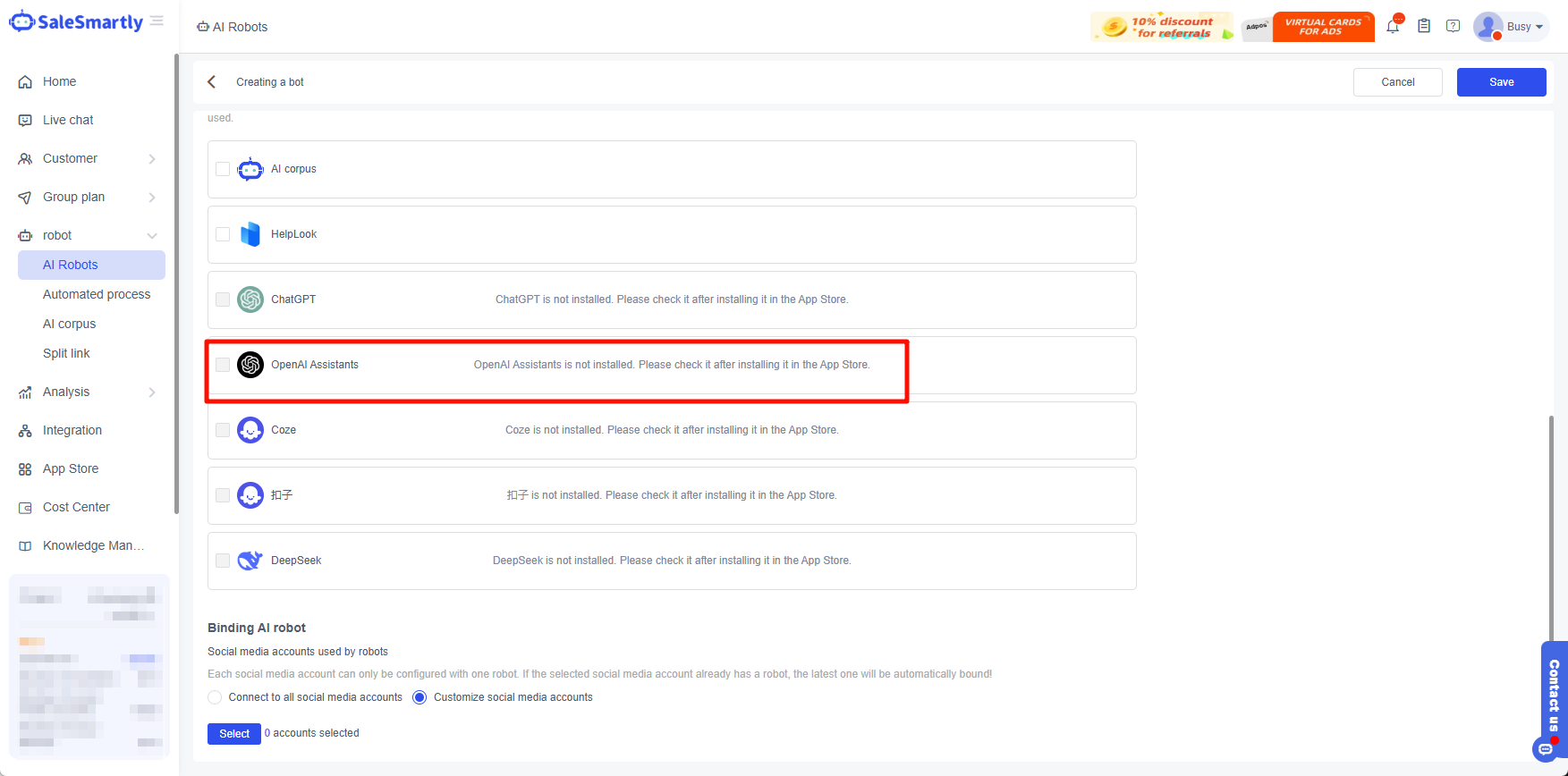 4.3. Cài đặt Assistants của bạn trên SaleSmartly