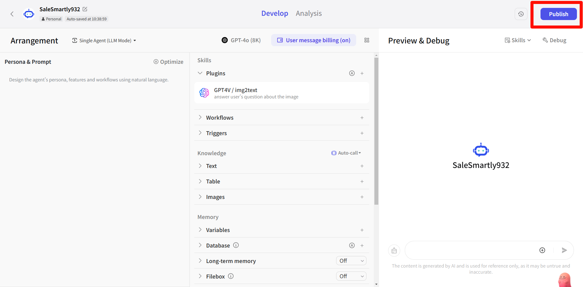 Giải pháp: Chi tiết xem Bước 5: Tạo robot và xuất bản API, nhấp để chuyển: </en/extensions/ai-tools/tutorial-on-configuring-coze-bot>.