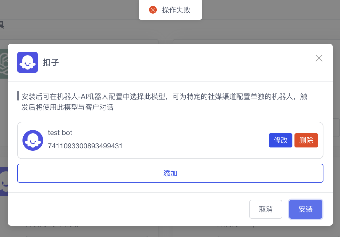 3.2. Khi cài đặt Coze trong SaleSmartly, hệ thống thông báo thất bại