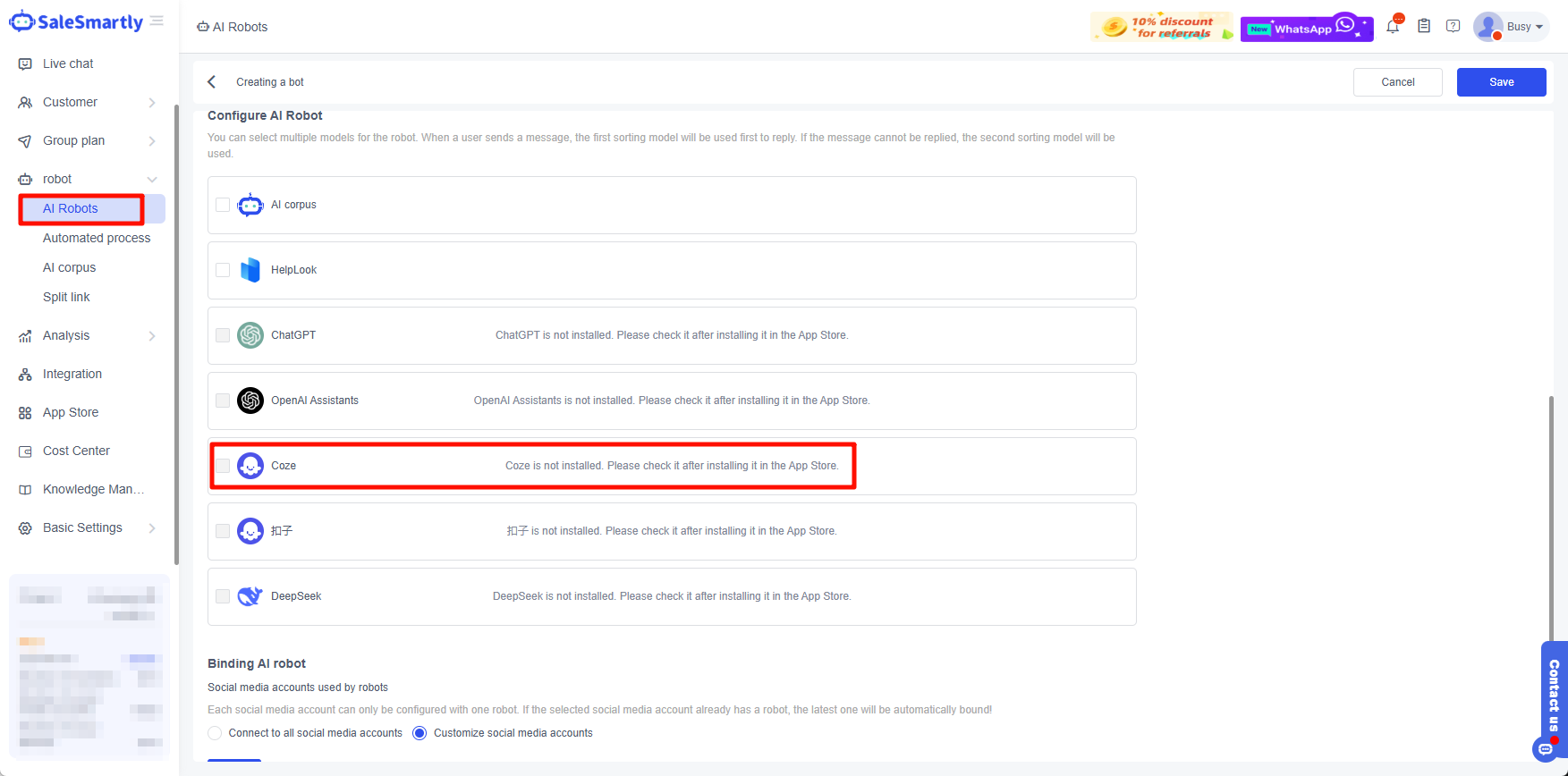 Hướng dẫn tích hợp Coze bot vào Salesmartly để chăm sóc khách hàng đa kênh