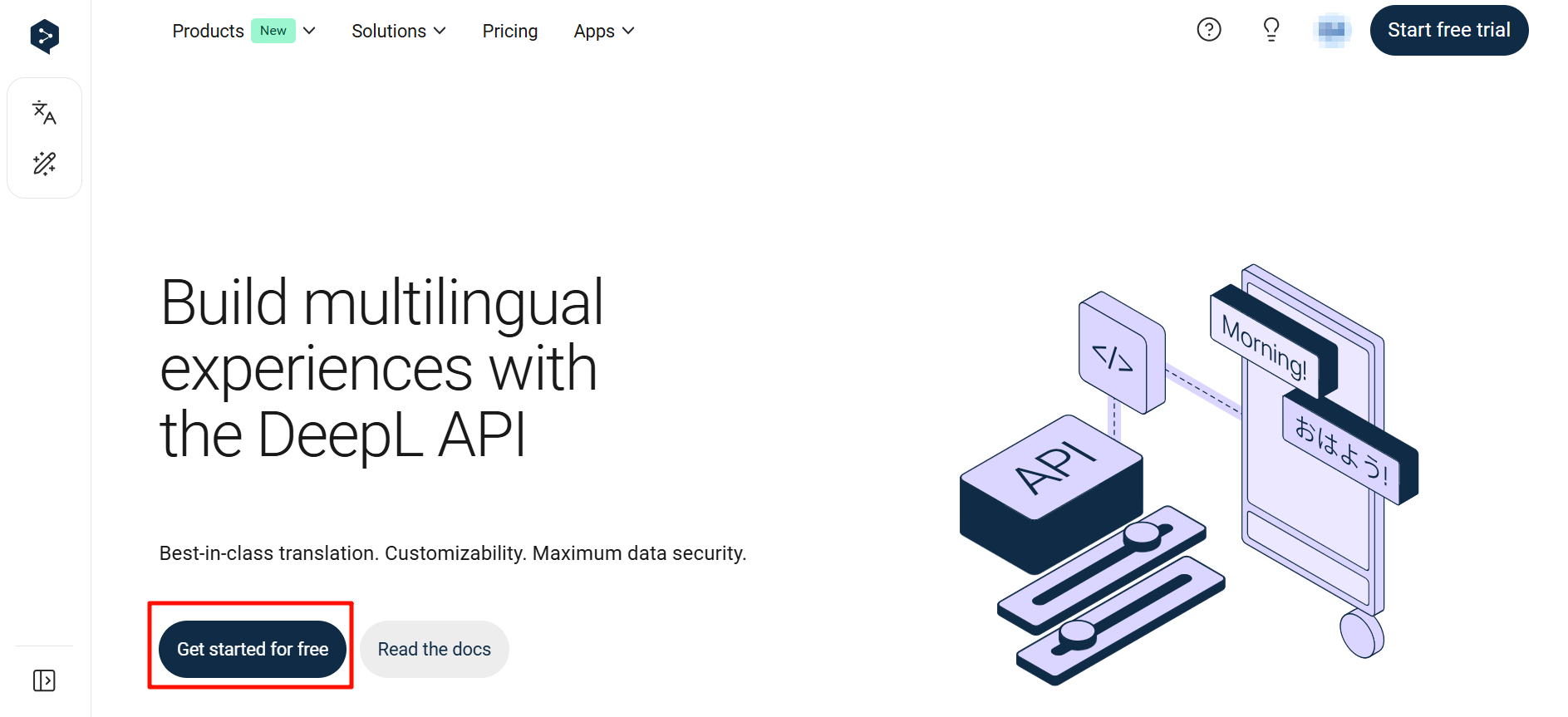 Điều hướng đến DeepL API > Chọn Giao diện Truy cập. Nhấn Bắt đầu Dùng Miễn Phí.