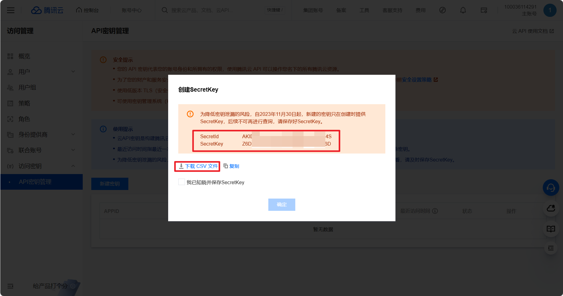 2.6. Lấy Secret ID và Secret Key