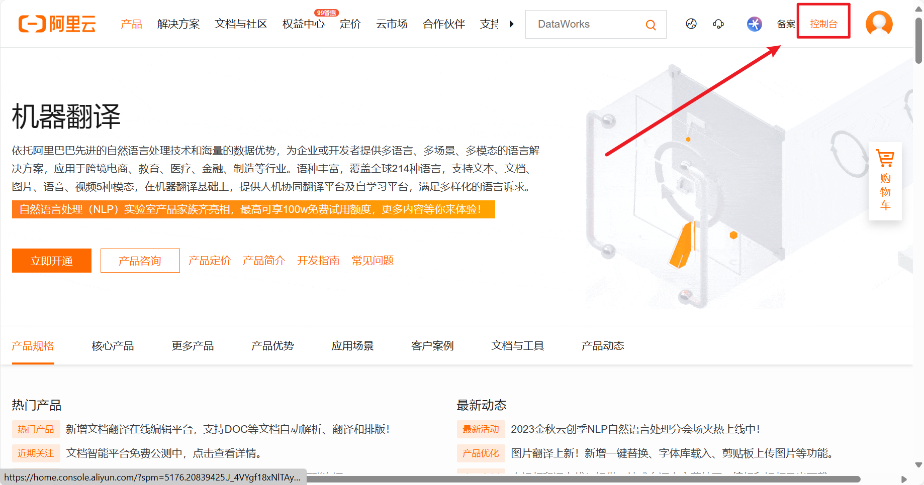 2.3. Truy cập bảng điều khiển Alibaba Cloud AI Translation