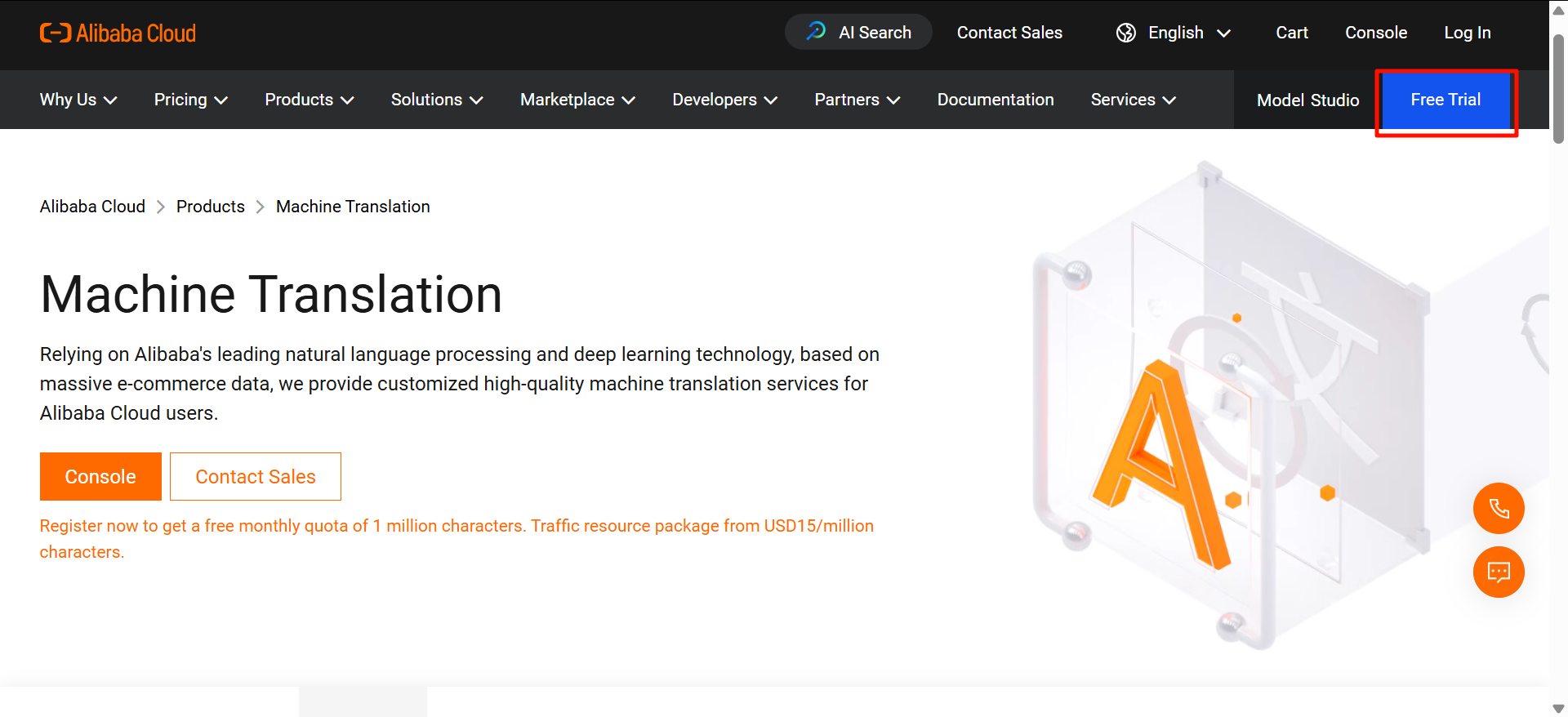 Truy cập giao diện dịch AI Alibaba Cloud tại đây