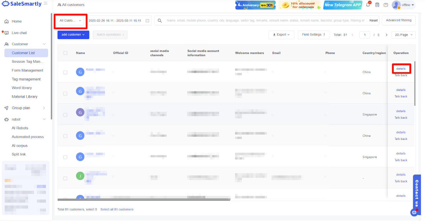 Hướng dẫn quản lý thông tin khách hàng đa kênh trên SaleSmartly